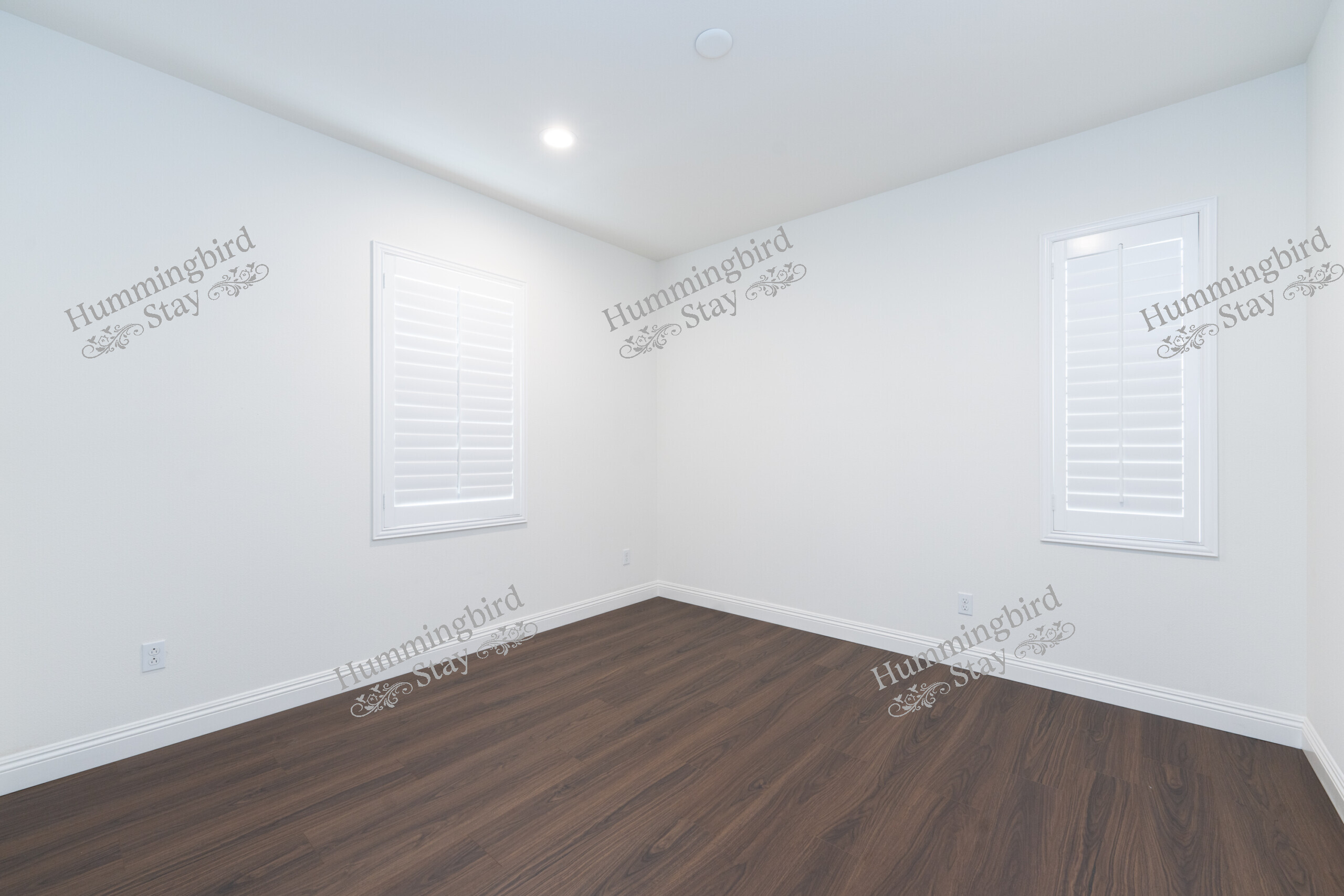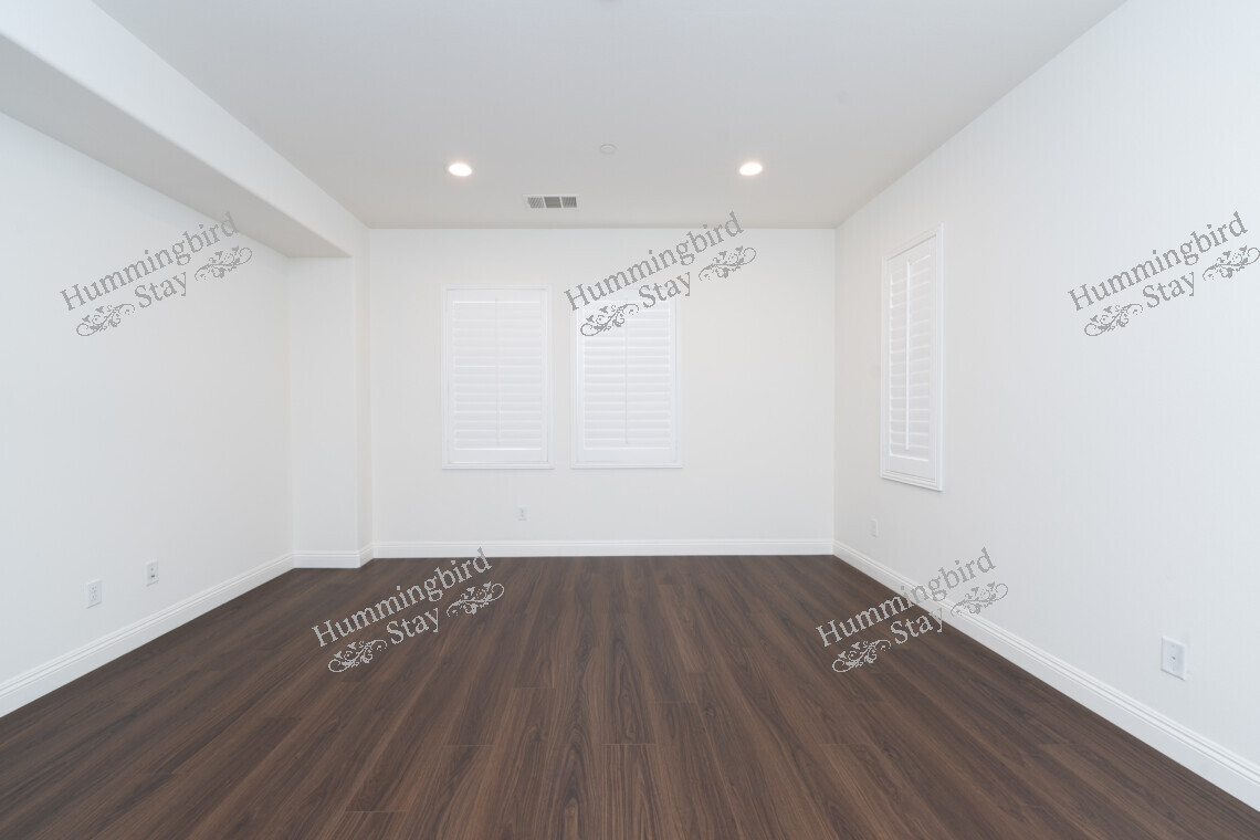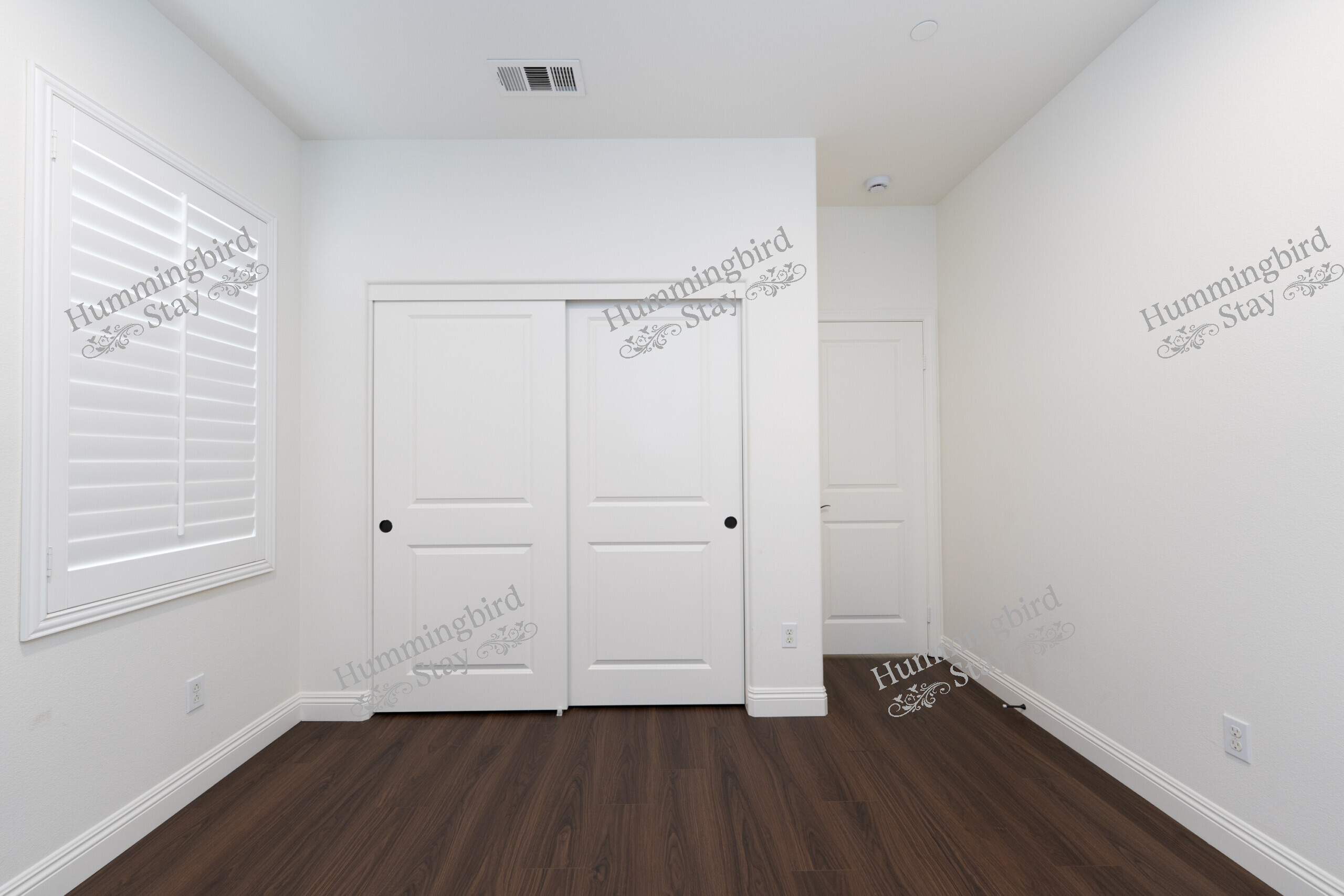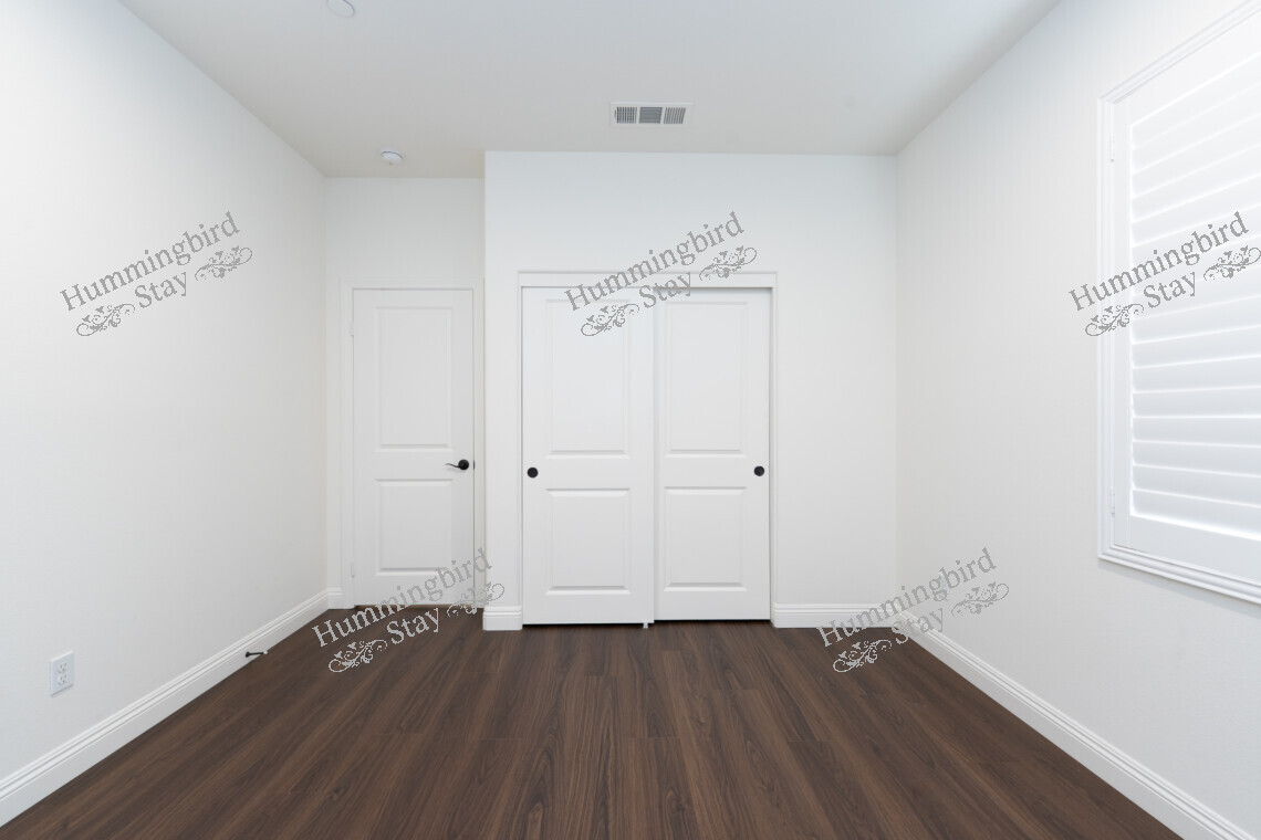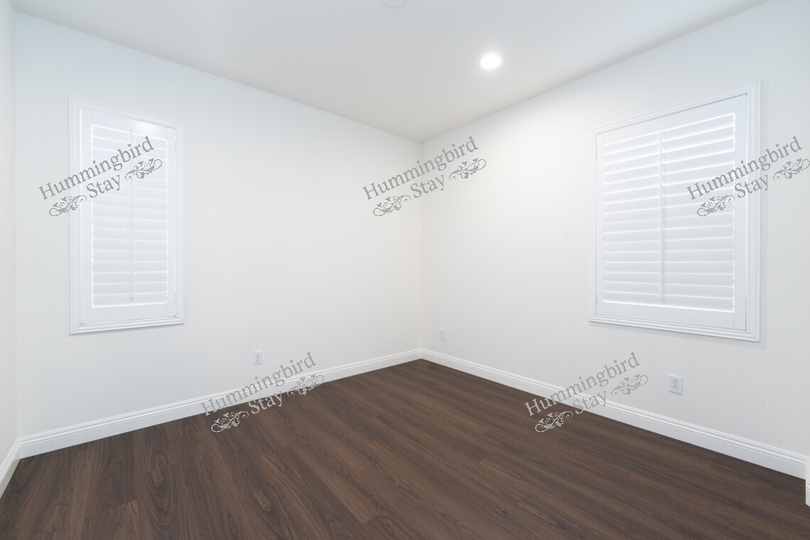 Secondary Bedrooms: Three additional well-proportioned bedrooms, each with wood-look plank flooring, plantation shutters or blinds, and sliding-door closets. Bright, clean, and move-in ready.